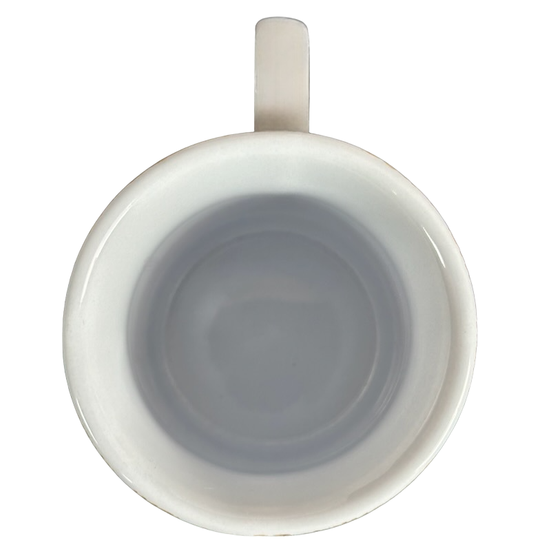 Copy 1: This mug is pre-owned and reconditioned. This mug has no chips, cracks, scratches, stains or crazing. There is some minor wear on the interior side wall where it meets the bottom surface. This was not captured in the photos.