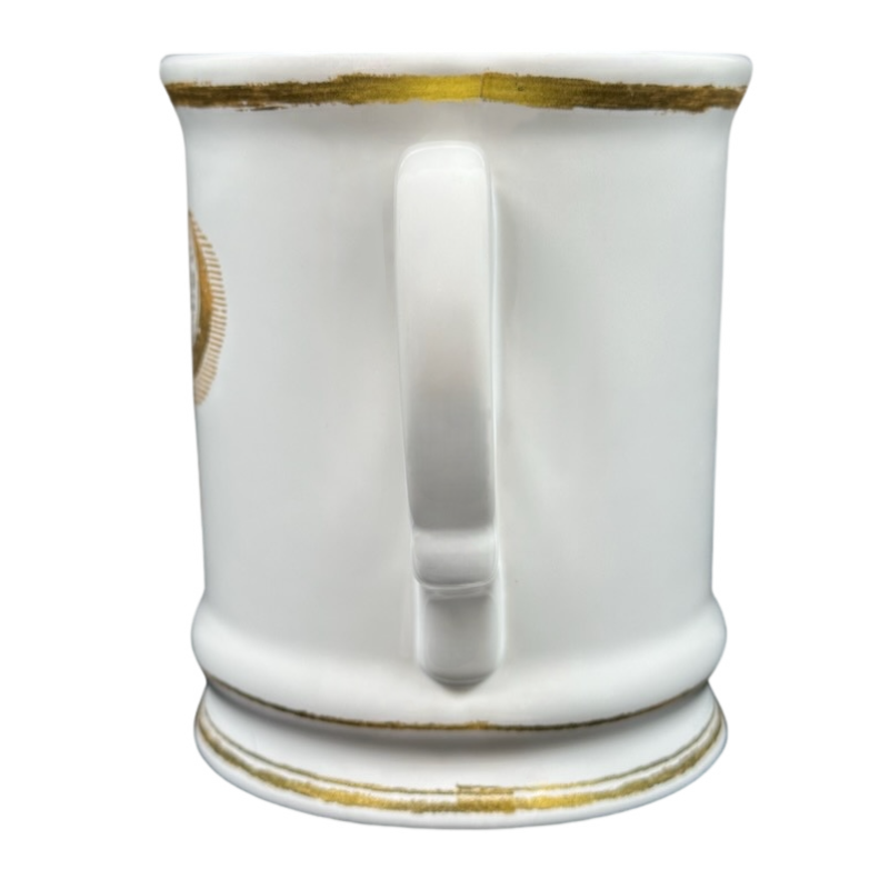 Please note the gold trim and graphics vary on each copy. Please look carefully at the photos to see the actual mug you will receive.
