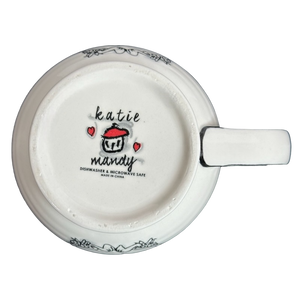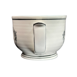 This mug has a fancier than average handle, the sides are finished in black trim similar to that below the rim.