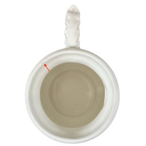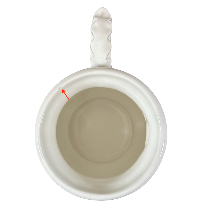 - There is a nick on the rim, please see the red arrow pointing to this in the fifth photo.