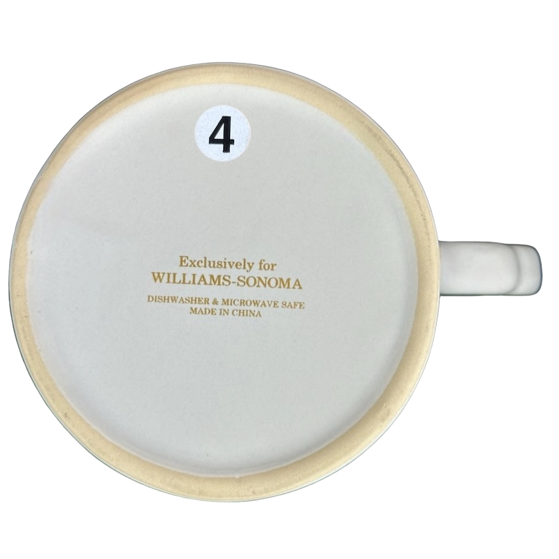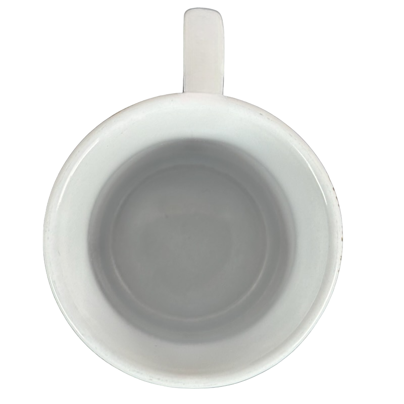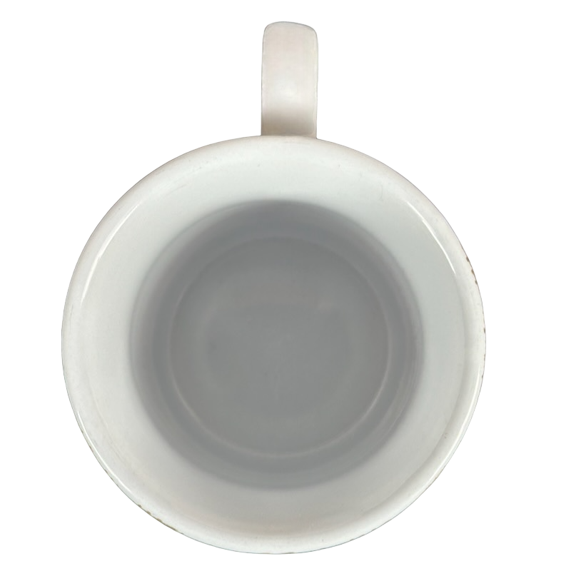 Copy 1: This mug is pre-owned and reconditioned. This mug has no chips, cracks, scratches, stains or crazing. There is some minor wear on the interior side wall where it meets the bottom surface. This was not captured in the photos.