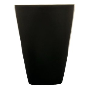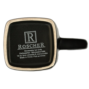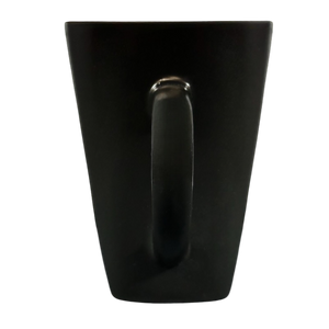 This mug has a round mouth and a square base.