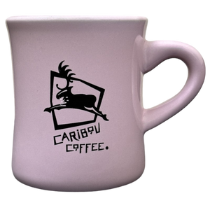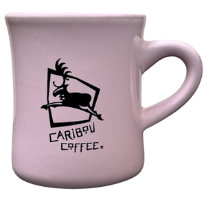 This is a heavy diner style mug that features the Caribou Coffee logo centered on its front surface.