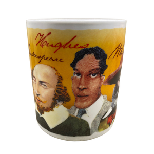 Features the following literary luminaries wrapping around its exterior surface: