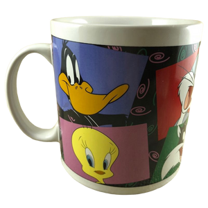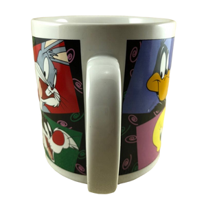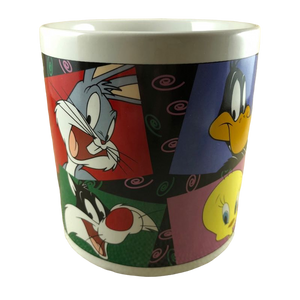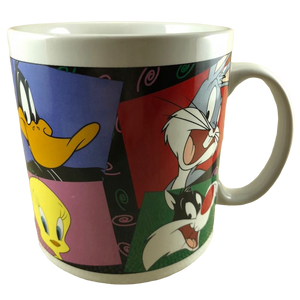 Features the same artwork on the front and rear exterior surface consisting of 4 different colored rectangles. Each square has a different Looney Tunes character inside it.