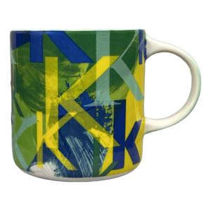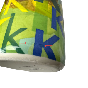 More of the letter "K" is surrounding this and printed in a repeating multicolor pattern that wraps around its exterior surface.
