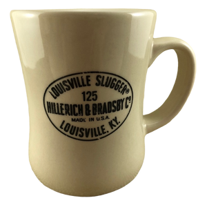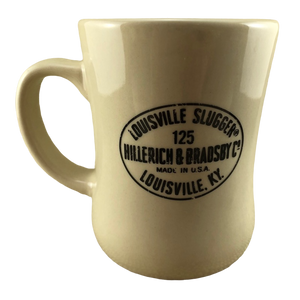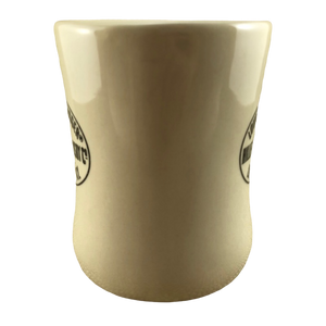 This is a heavy diner style mug that features the same oval logo on its front and rear surface.
