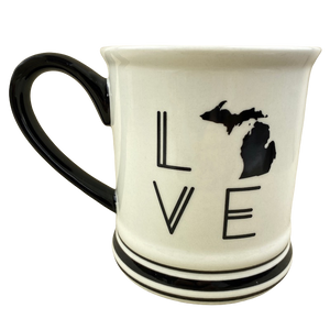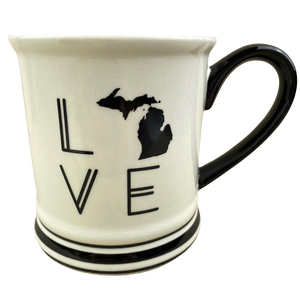 Features the same artwork on its front and rear surface depicting a map of Michigan which is used to represent the letter O in "LOVE".