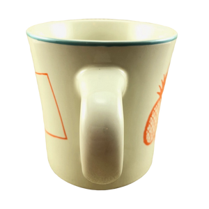 Copy 2: This mug has no chips, cracks, scratches, stains or crazing. There is a tiny spot on the rear surface where the orange paint is missing. Please see the red arrow pointing to this in the 3rd photo. On the rear lower edge near the rim the paint was not fully applied all the way to the bottom of the mug. This is not damage but rather is a manufacturing imperfection. Please see the close up view of this in the last photo. There is a hint of wear on the bottom rim, please see the 6th photo. Overall this mug is in excellent condition.