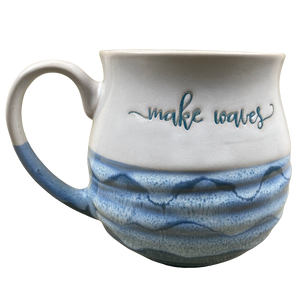 Etched into the front and rear upper surface in a cursive font is "make waves."
