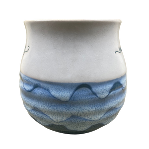 This beautiful oversized mug features lightly embossed abstract artwork wrapping around its exterior lower surface.