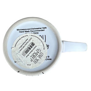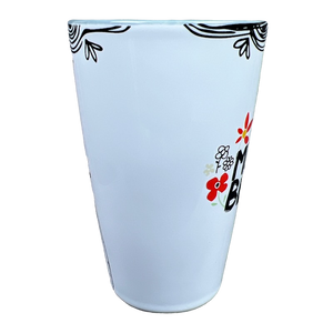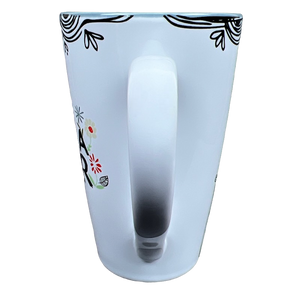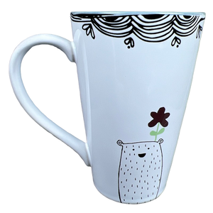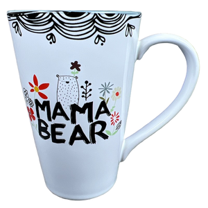 This is a taller than average mug that features a mama bear on its front surface surrounded by flowers.