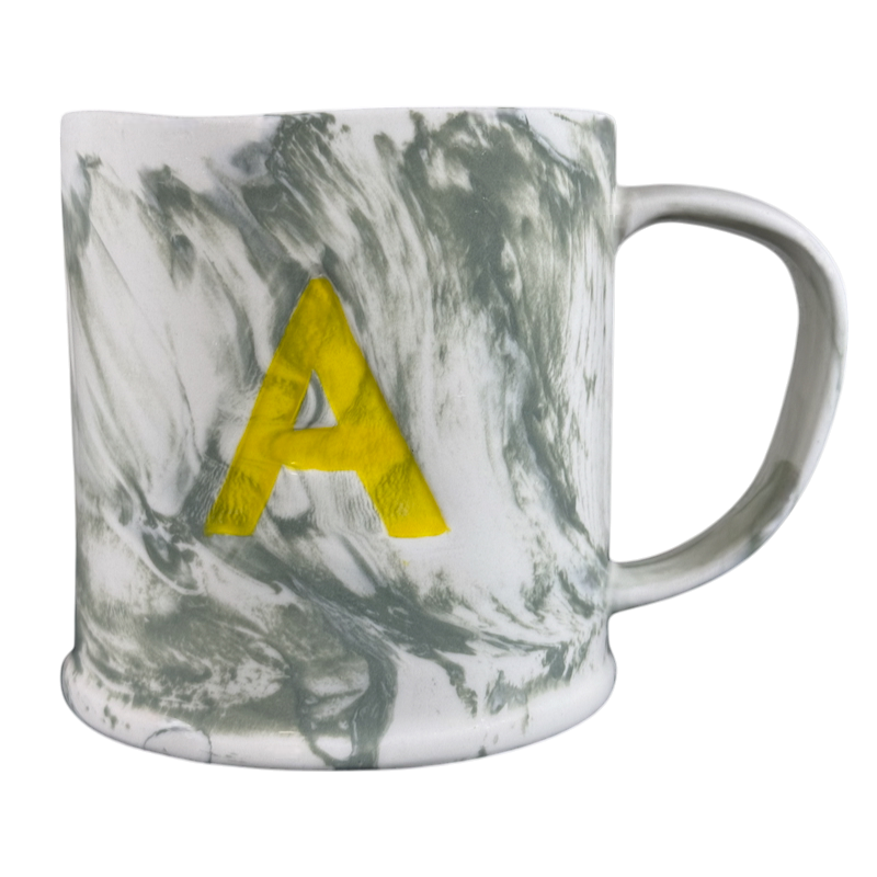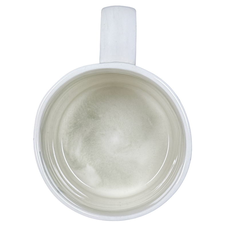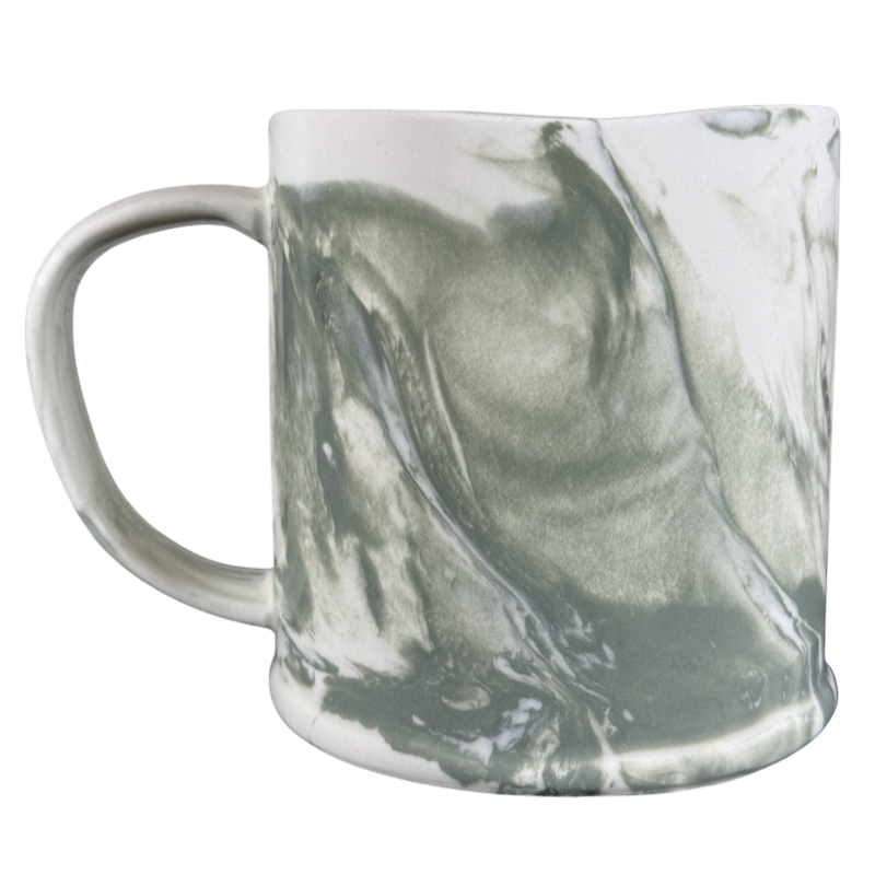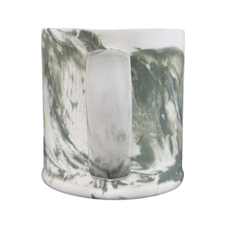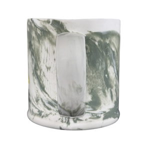 This beautiful mug has a marble finish on its interior and exterior surface and on the handle.