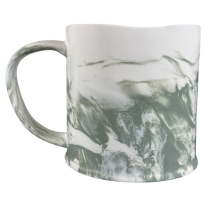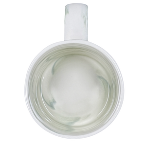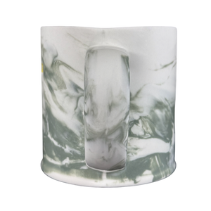 This beautiful mug has a marble finish on its interior and exterior surface and on the handle.