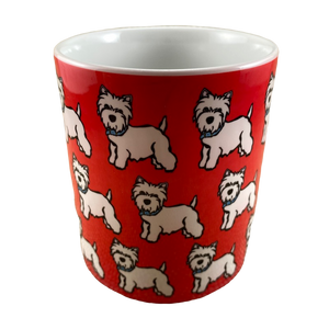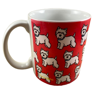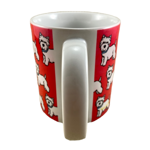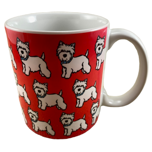 Features many of the same image of a West Highland Terrier against. are background wrapping around its exterior surface.