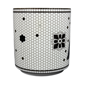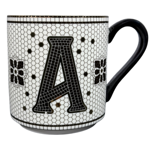 Features a gorgeous tiled finish wrapping around its exterior surface with the letter "A" on its front surface.