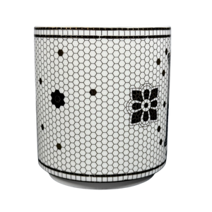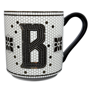Features a gorgeous tiled finish wrapping around its exterior surface with the letter "B" on its front surface.
