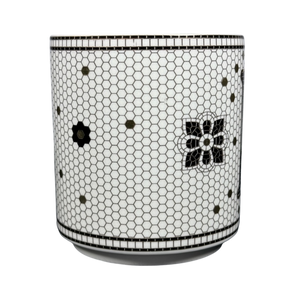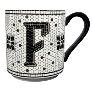 Features a gorgeous tiled finish wrapping around its exterior surface with the letter "F" on its front surface.