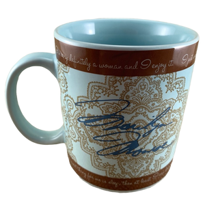 Inside this mug on its rear upper surface is the following quote from her also in a cursive font: