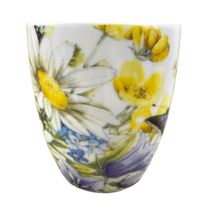 Feature beautiful floral artwork wrapping around its exterior surface. There is also a butterfly and a ladybug.