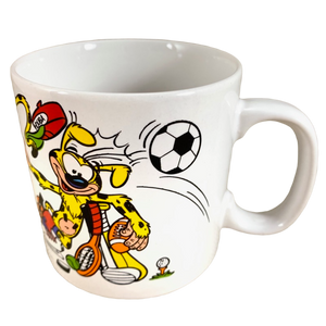 Features the character Marsupilami on its front surface playing various sports.