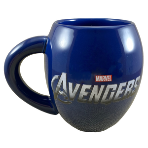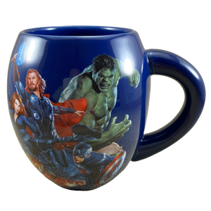 This is an oversized barrel style mug. It features an image of The Avengers on its front surface.