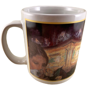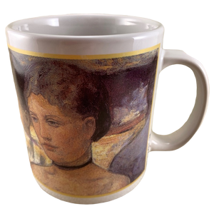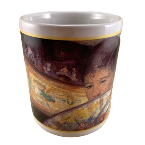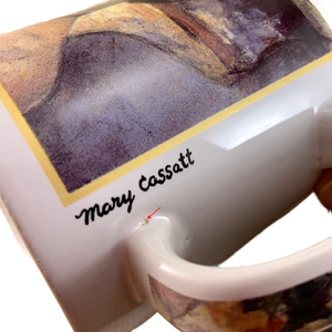This beautiful mug features colorful artwork depicting "The Loge" by Mary Cassatt wrapping around its exterior surface and on the handle.