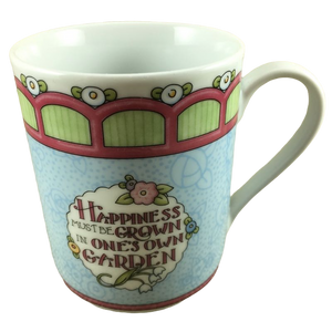 Printed on the front surface: "HAPPINESS MUST BE GROWN IN ONE'S OWN GARDEN"