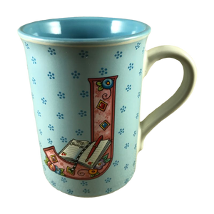Features the letter "J" on the front surface with an open journal and pen on top of it.