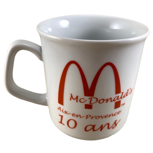 Features the Golden Arches in red (the red arches?) printed on its rear surface with the following text superimposed on them: