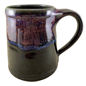 This mug has an absolutely gorgeous finish, it's primarily dark blue to black but scattered throughout its upper surface is a rainbow like abstract design. Please see the photos as I am sure I am not doing this design justice.