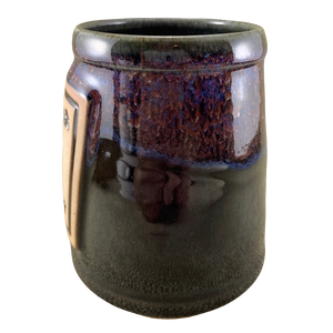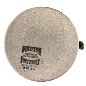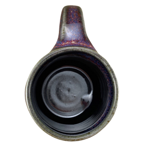 This is a glorious handmade pottery mug. On the bottom there is a stamp that reads: