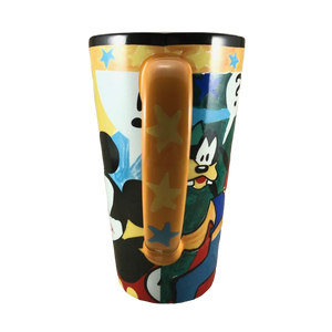 Features very colorful artwork wrapping around its exterior surface consisting of Mickey Mouse and Goofy among stars.