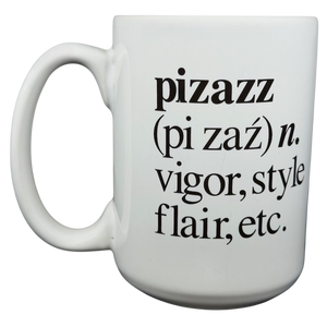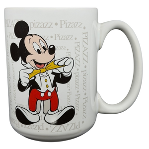 This classic Disney Mickey Mouse mug features a crisp white exterior accented by a playful “Pizazz” theme, with Mickey dressed in a tuxedo adjusting his yellow bow tie against a repeating typographic background for a clean, graphic look. The design wraps around the mug, pairing bold character artwork with a dictionary-style definition of pizazz that adds charm and personality, while the comfortable curved handle and smooth glazed interior make it easy to enjoy daily coffee or tea. Finished with a simple © Disney bottom mark, this mug blends timeless character appeal with understated style, making it a fun and versatile collectible for any Mickey fan.