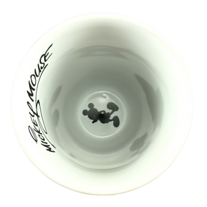 Inside this mug on its bottom surface is an image of Mickey Mouse's silhouette.