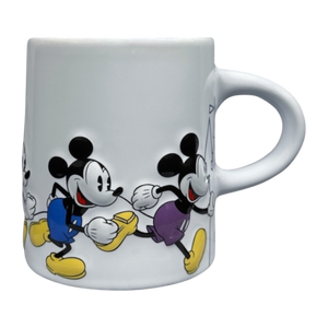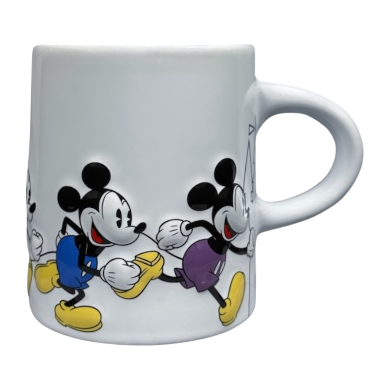 This extremely rare mug features multiple 3D embossed images of Mickey Mouse running on its exterior surface.