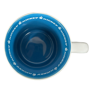 Inside this mug on its upper surface near the rim, "MICKEY" is printed repeatedly with the same castle from the exterior next to each one.