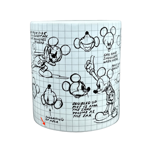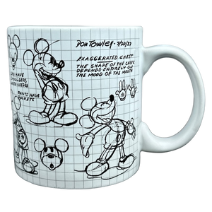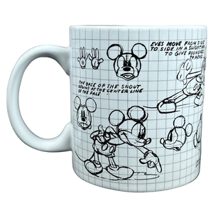 Features images of Mickey Mouse as black and white pencil sketches wrapping around the exterior of this mug.