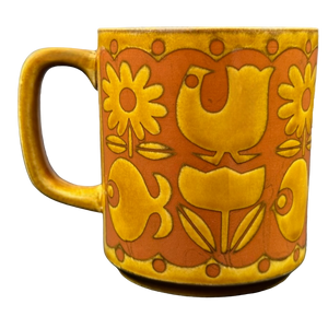 This mug strongly resembles the style created by John Clappison from Hornsea Pottery. However no markings are present.