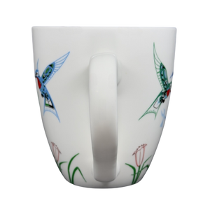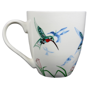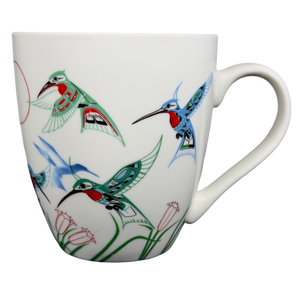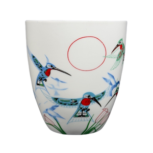 Features vibrant colorful artwork wrapping around its exterior surface depicting hummingbirds migrating.