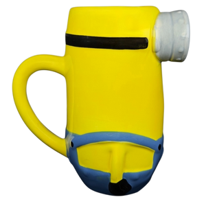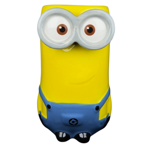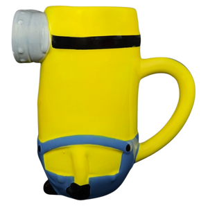 This playful ceramic mug features a detailed 3D sculptural design of Kevin the Minion from the Despicable Me franchise. The mug is expertly shaped to depict his iconic yellow body, signature silver goggles, and blue denim overalls complete with the Gru logo. A sturdy yellow handle extends from the side for a comfortable grip, while the interior is finished with a smooth, clean white glaze. Produced by Zak Designs, this high-quality collectible is perfect for fans of all ages and makes a cheerful addition to any kitchen or office.
