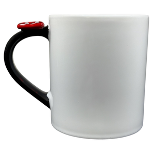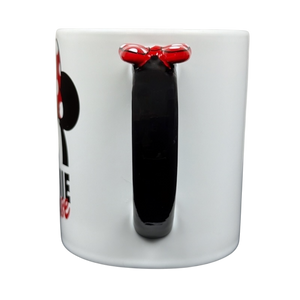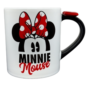 This elegant mug showcases Minnie Mouse adorned with her signature red bow embellished with white polka dots on the front. A three-dimensional red bow with white polka dots gracefully accents the handle, while the interior is tastefully patterned with the same iconic bow motif, creating a refined Disney Parks collectible.