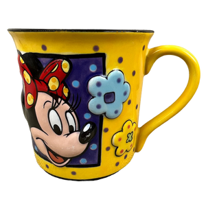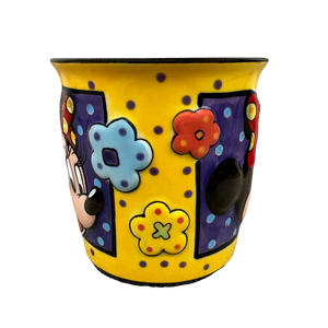 Features the same embossed artwork on its front and rear surface depicting Minnie Mouse and flowers.