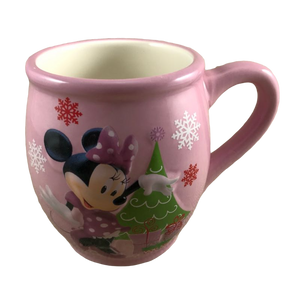 Features an embossed image of Minnie Mouse on the front surface in front of a Christmas tree with gifts next to her and snowflakes surrounding above her.