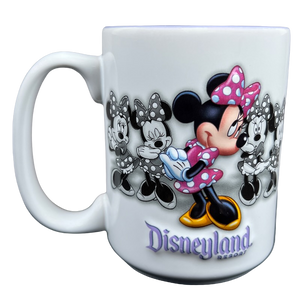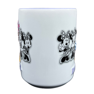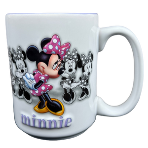 Features the same embossed image of Minnie Mouse on the front and rear surfaces with 4 more black and white images of Minnie Mouse behind that.