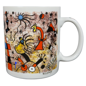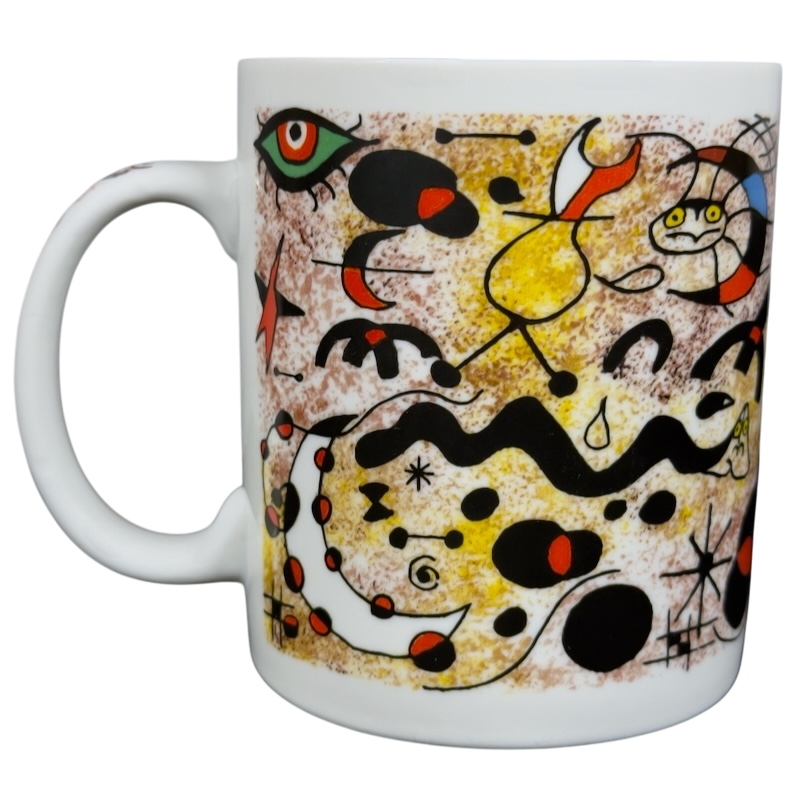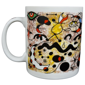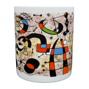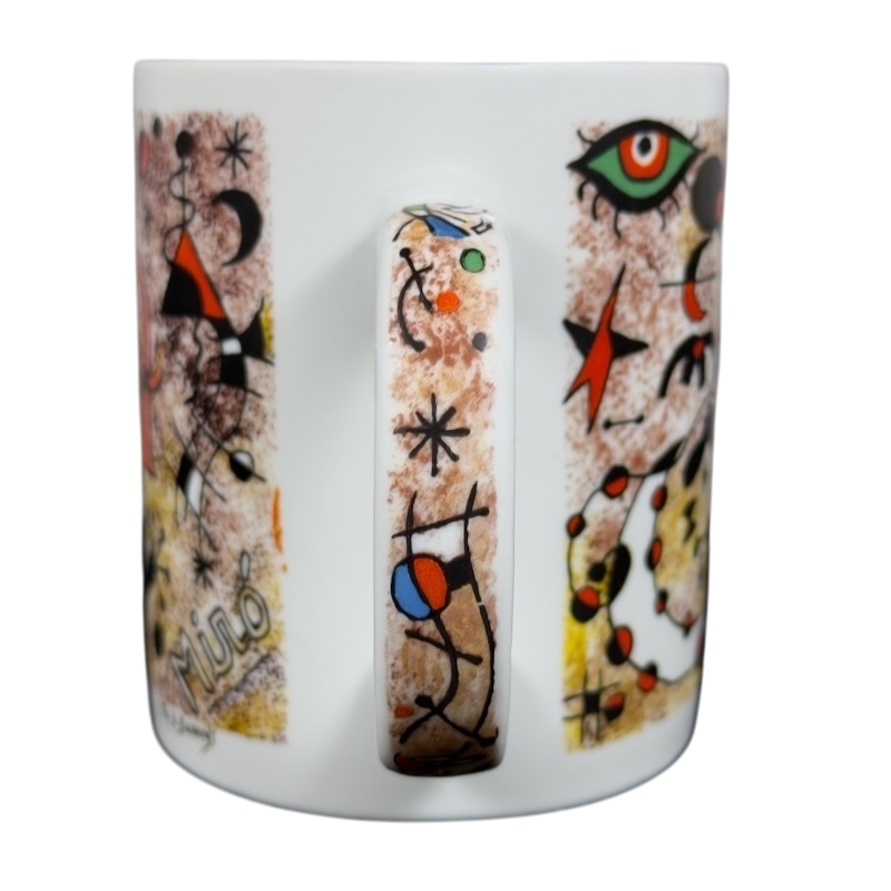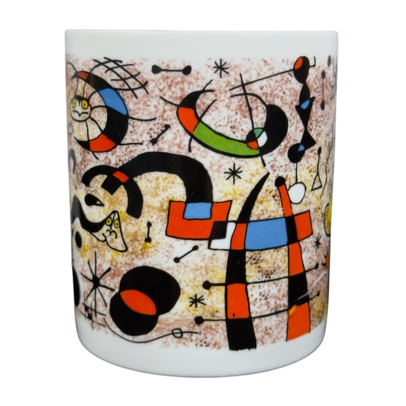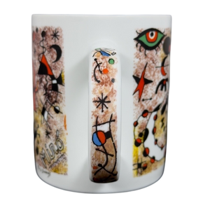 This beautiful mug features colorful abstract art deco artwork on all sides and the handle by Joan Miro.