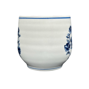 Also has blue trim wrapping around the rim on the exterior and interior surface.