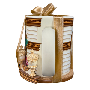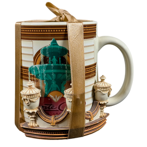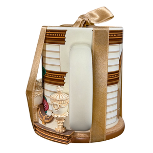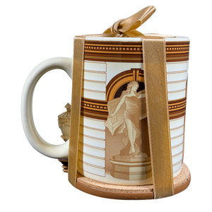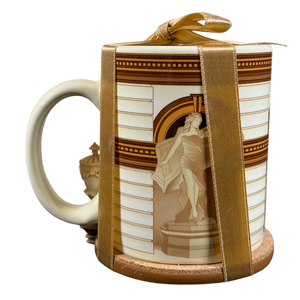 Copy 3: This mug appears unused with its original sticker still on its bottom surface. This mug has no chips, cracks, scratches, stains or crazing. There is some discoloration on the ribbon that holds the coaster and mug together. There are some extremely minor imperfections on the exterior surface. Overall this mug is in excellent condition. Please look carefully at the photos to see the actual mug you will receive.