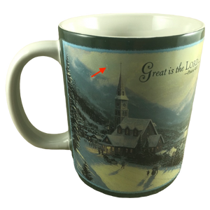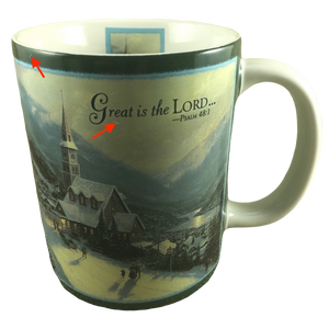 Features the same beautiful image of a village on the front and rear surfaces. Above this image is printed "great is the LORD...-Psalm 48:1"