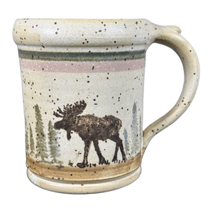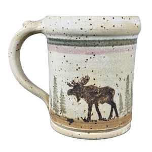 Features the same artwork on its front and rear surface of an image of a moose.
